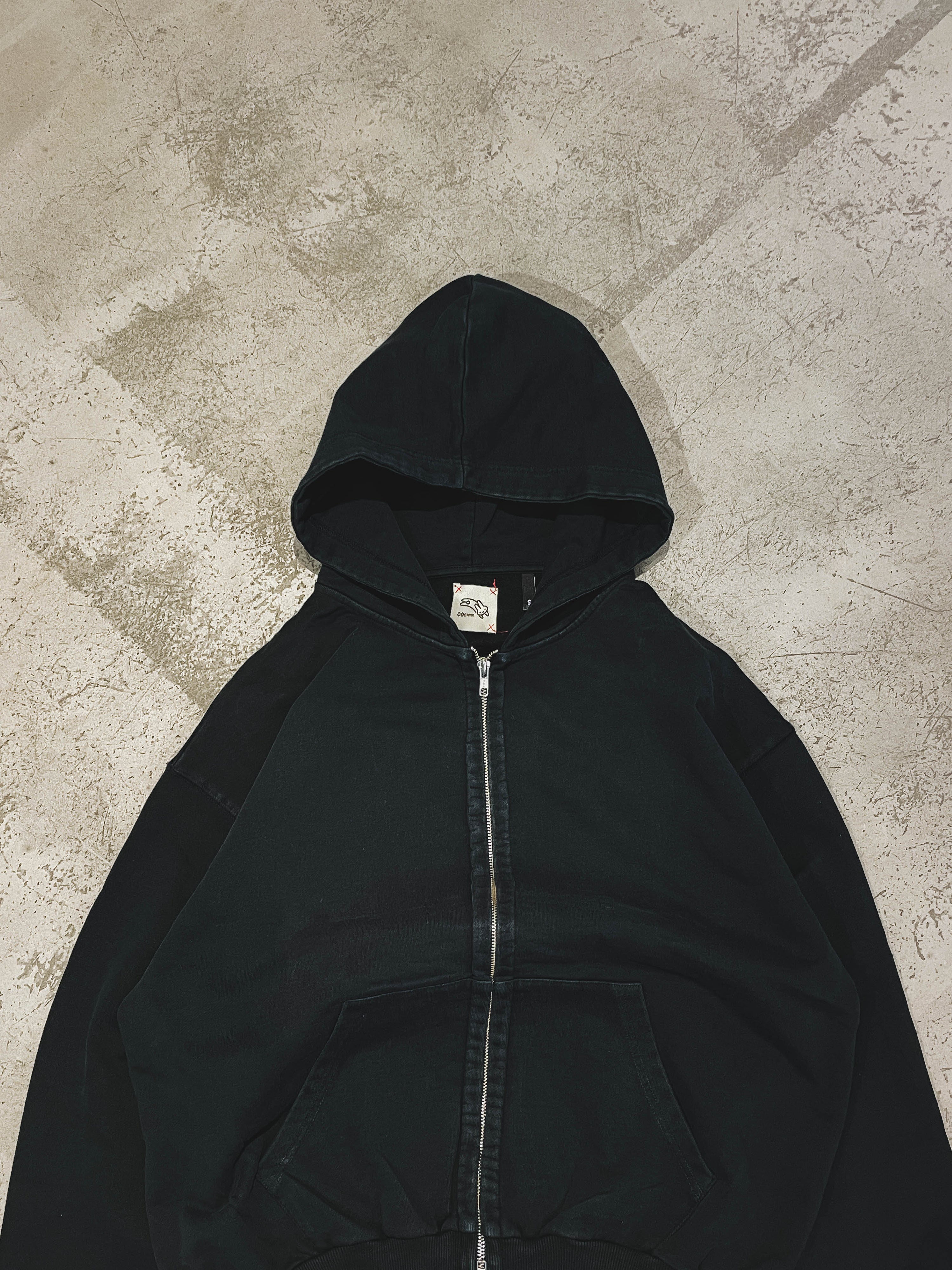 Boxy fit T-shirt, med airbrush-design, med bjørn, der skal på arbejde, tekst, der siger "månedens medarbejder".